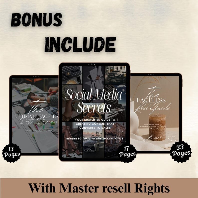 This Ultimate Aesthetic Faceless Bundle is your shortcut to producing viral, luxury content that captivates and converts — perfect for creators, influencers, coaches, and digital product sellers.